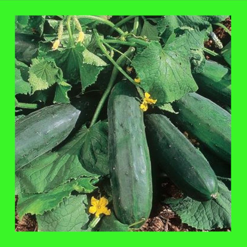 CUCUMBER-BUSH CROP requires about 2/3 less garden space than a vining type without sacrificing quality. The plant produces generous numbers of medium-sized, 15-20cm long fruits on dwarf bushy plants. Small straight, slicing cucumbers with a dark bluish-green rind. This variety performs well in containers and in small garden plots. An excellent variety for small gardens. Resistant to scab.