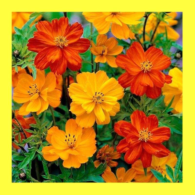FLOWER-COSMOS-BRIGHT LIGHTS MIX Fewer flowers offer the gracefulness of Cosmos Bright Lights. The Cosmos are uniform growing plants that bloom throughout the summer. They bear a profusion of intense, semi-double flowers. Foliage is delicate, feathery green that gives an airy touch to the garden from midsummer to frost. A wonderful flower for cutting and bringing inside. They also tolerate poor soil, heat, and humidity. Attracts Butterflies. Proven tops for performance and adaptability.