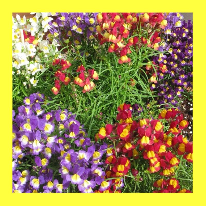 FLOWER-LINARIA-NORTHERN LIGHTS MIX is a low growing bedding plant, with an abundance of flowers in a range of vibrant colors on attractive foliage. Attracts butterflies & bees. A highly original bedding plant, the Linaria is low-growing & has attractive grey-green foliage. This is flanked, through the summer months, by a myriad of flowers in a mix of bright & striking shades including reds, oranges, yellows, and bicolours. Makes an excellent pot filler or border flower & is often called a mini snapdragon because it mimics them in appearance. This flower grows well in full sun or partial shade. Blooms for this flower will last longer in cooler climates. Native to Morocco.