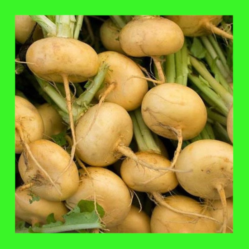 TURNIP-GOLD BALL is a truly exceptional turnip. It was first recorded in France as early as 1854 & is still very common. These turnips grow to 7-10 cm fairly uniform. This heritage variety is fine-grained, smooth, & never woody like other turnips can be, it has a sweet, mild flavor & smooth skin, with creamy yellow to orange flesh depending on the soil type. It stores well & can be used at various stages of maturity. Can be grown most of the year & the tops are also edible as greens.